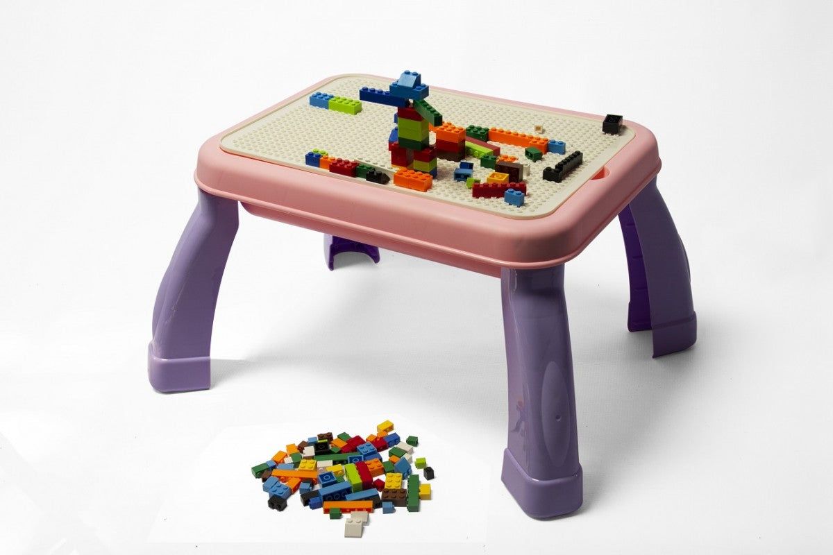 2-in-1 Drawing & Building Table - Purple/Pink - Learn as you have fun with the 2-in-1 Drawing & Building Table. This awesome table will provide hours of fun for your children as strengthen their fine motor skills through the sorting and colour recognition of the easy-to-put-together blocks. The table can be used to build on, for drawing, or it can even be converted into a study desk for homework.