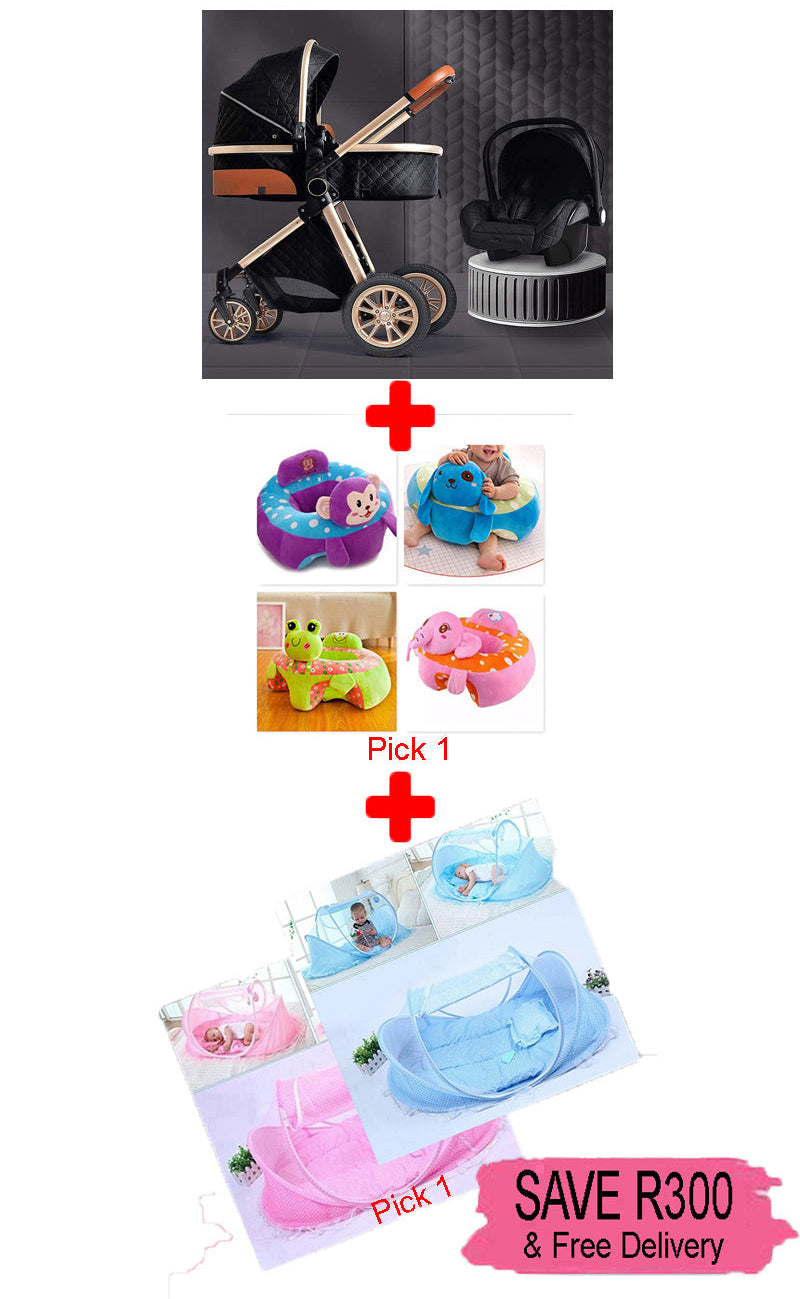 3 in 1 Foldable Baby Stroller Travel System (Black) & Baby Plush Chair & Baby Sleeping Tent