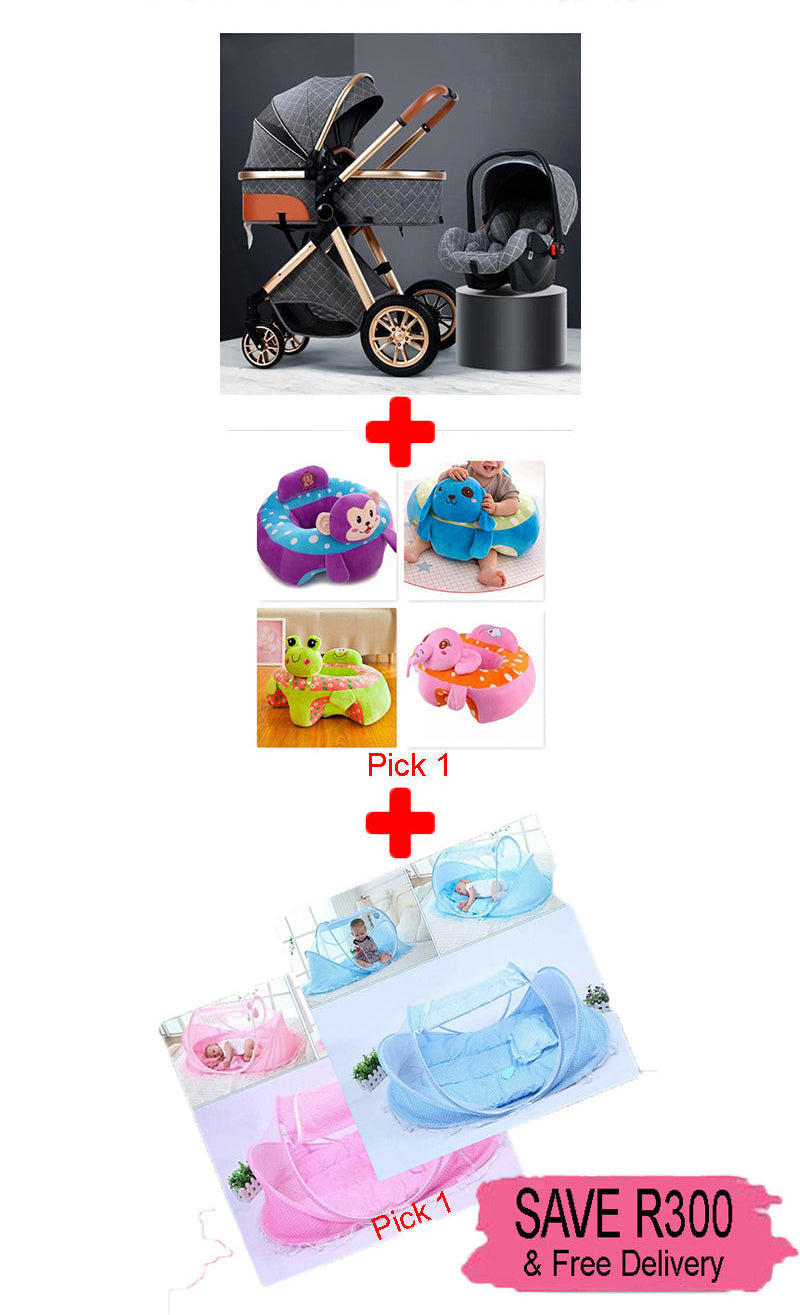 3 in 1 Foldable Baby Stroller Travel System (Grey) & Baby Plush Chair & Baby Sleeping Tent