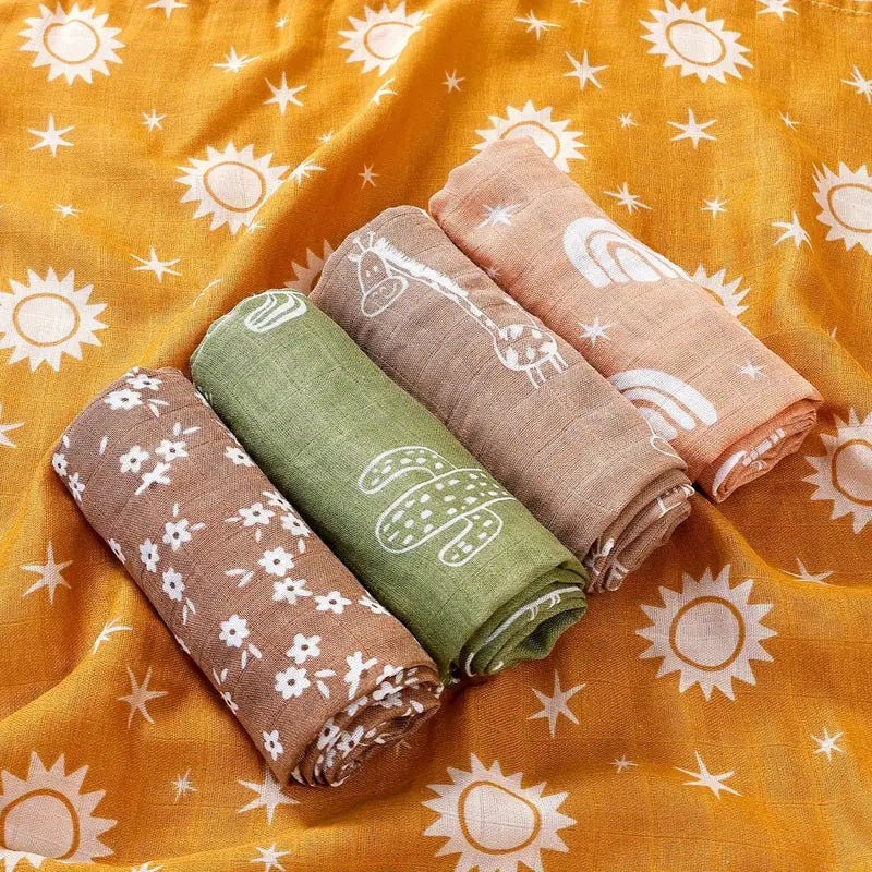 5-Pack Silky-Soft Bamboo Muslin Swaddles - Earthy