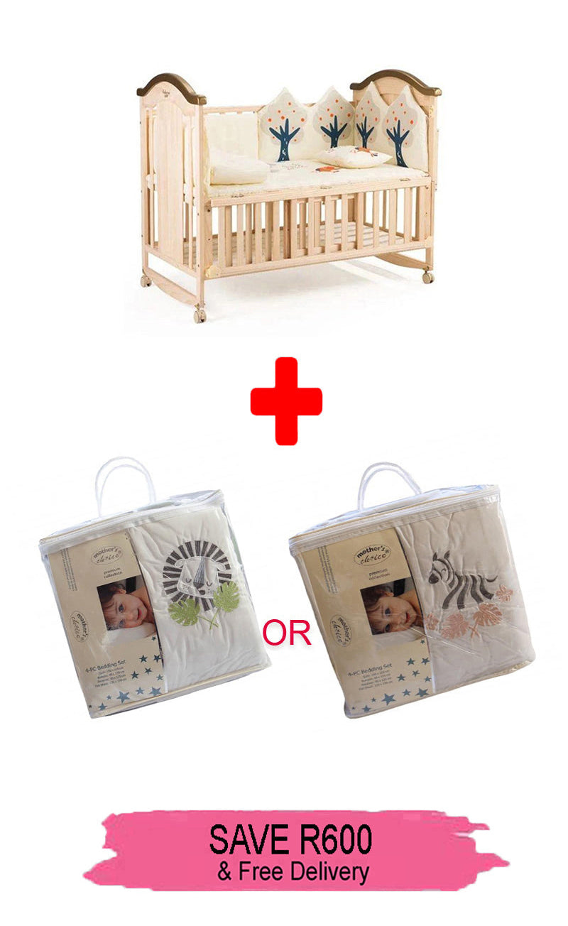 Bebivata Baby Cot & 4 Piece Baby Bedding Set