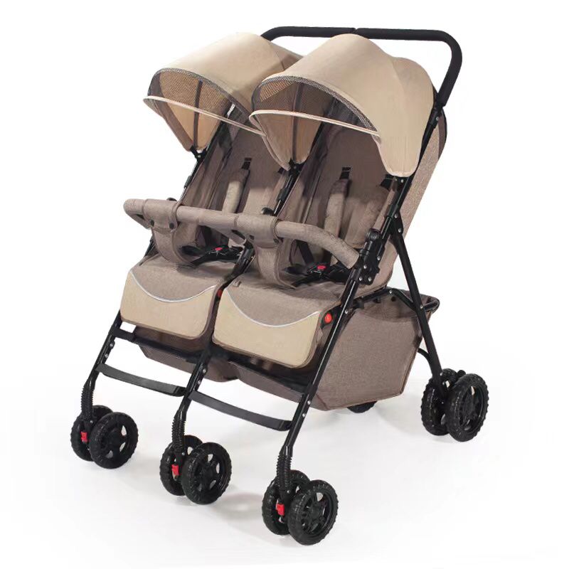 - Swiveling anti-shock front wheels and two larger durable back wheels help you maneuver this twin stroller over rough terrain or through the city streets as easy as standard single stroller
