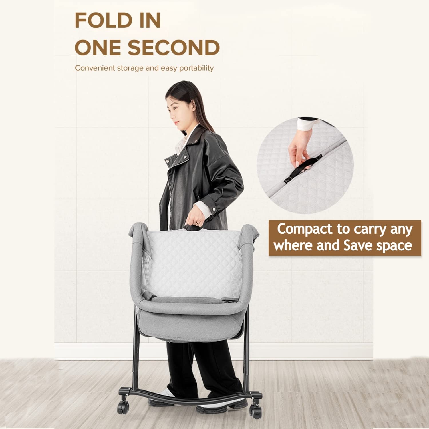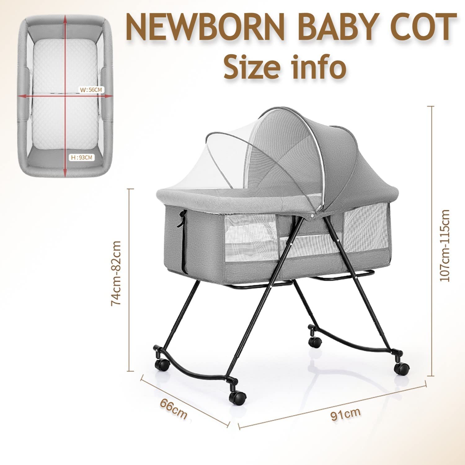 This baby bassinet is a modern touch to your baby's nursery. It is unique as it has a mosquito net, wheels for easy transport and peek through windows.