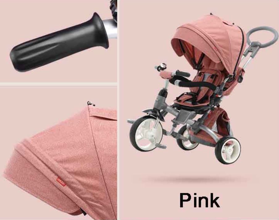 - Free cycling Mode (for toddlers of 24 months & up) Handle removed with Safety guard and backrest & safety belt installed.