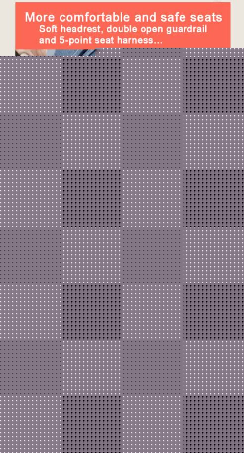 - Push mode with footrest: Forward-facing seat with footrests deployed for a comfortable adventure.