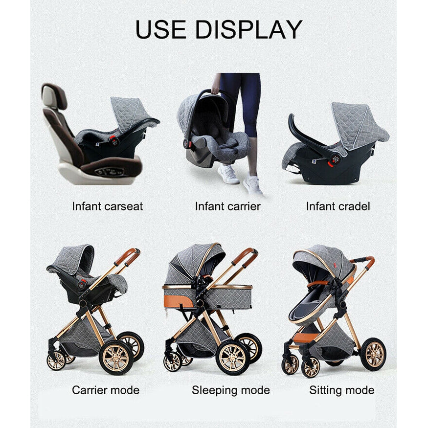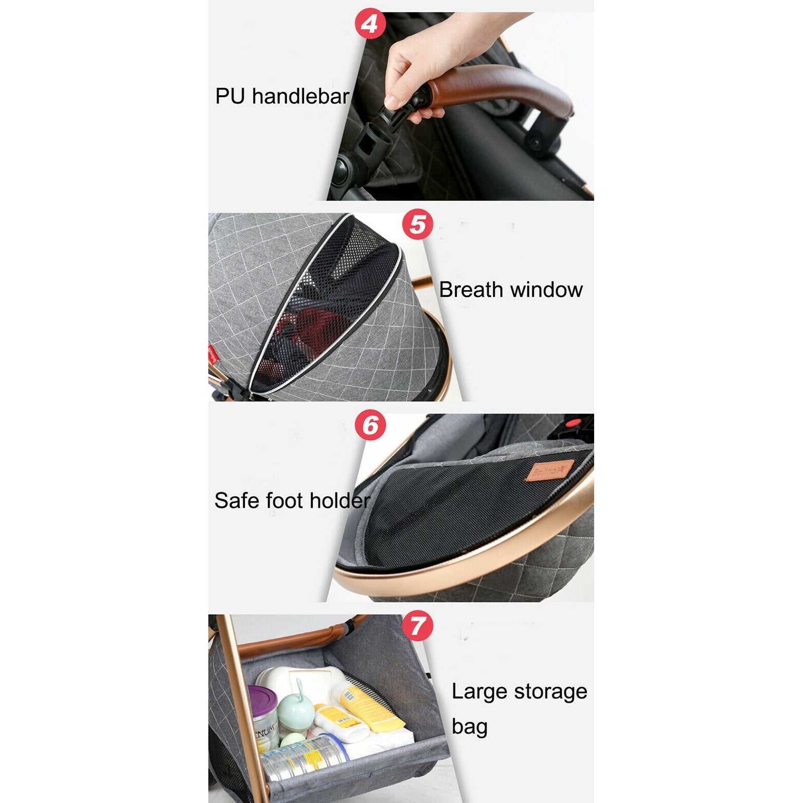 - The baby stroller seat can be adjusted in three inclinations (Lying flat, semi-lying, sitting angle ),essentials for newborn babies.