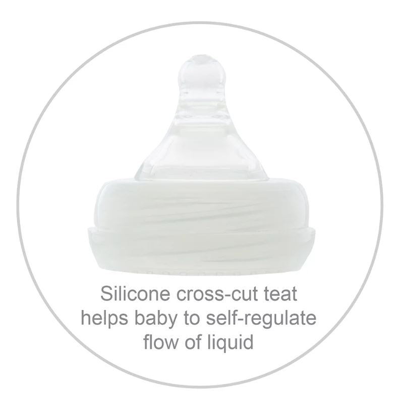 - Non-leak wide neck Silicone cross-cut teat helps baby to self-regulate flow, speed and volume of the feed.